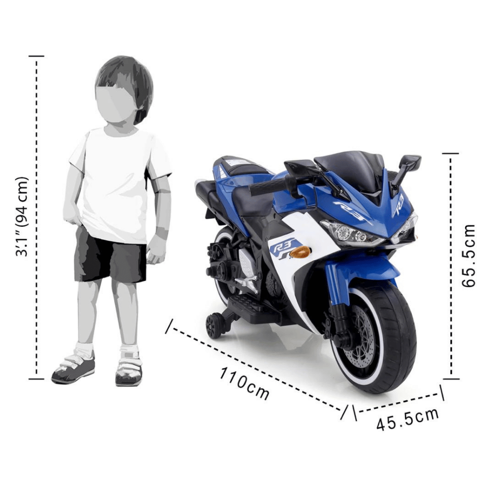 Introduce your child to the thrill of riding with the Kids Electric Sports Bike R3 Model! Designed for young riders, this stylish sports bike comes with powerful motors, LED headlights, realistic engine sounds, and training wheels for stability. The easy throttle control ensures a smooth ride, while the rechargeable battery provides extended playtime. Whether cruising indoors or outdoors, this bike guarantees fun and adventure while keeping safety a top priority. Perfect for kids who love speed and style! 🚀🏍️